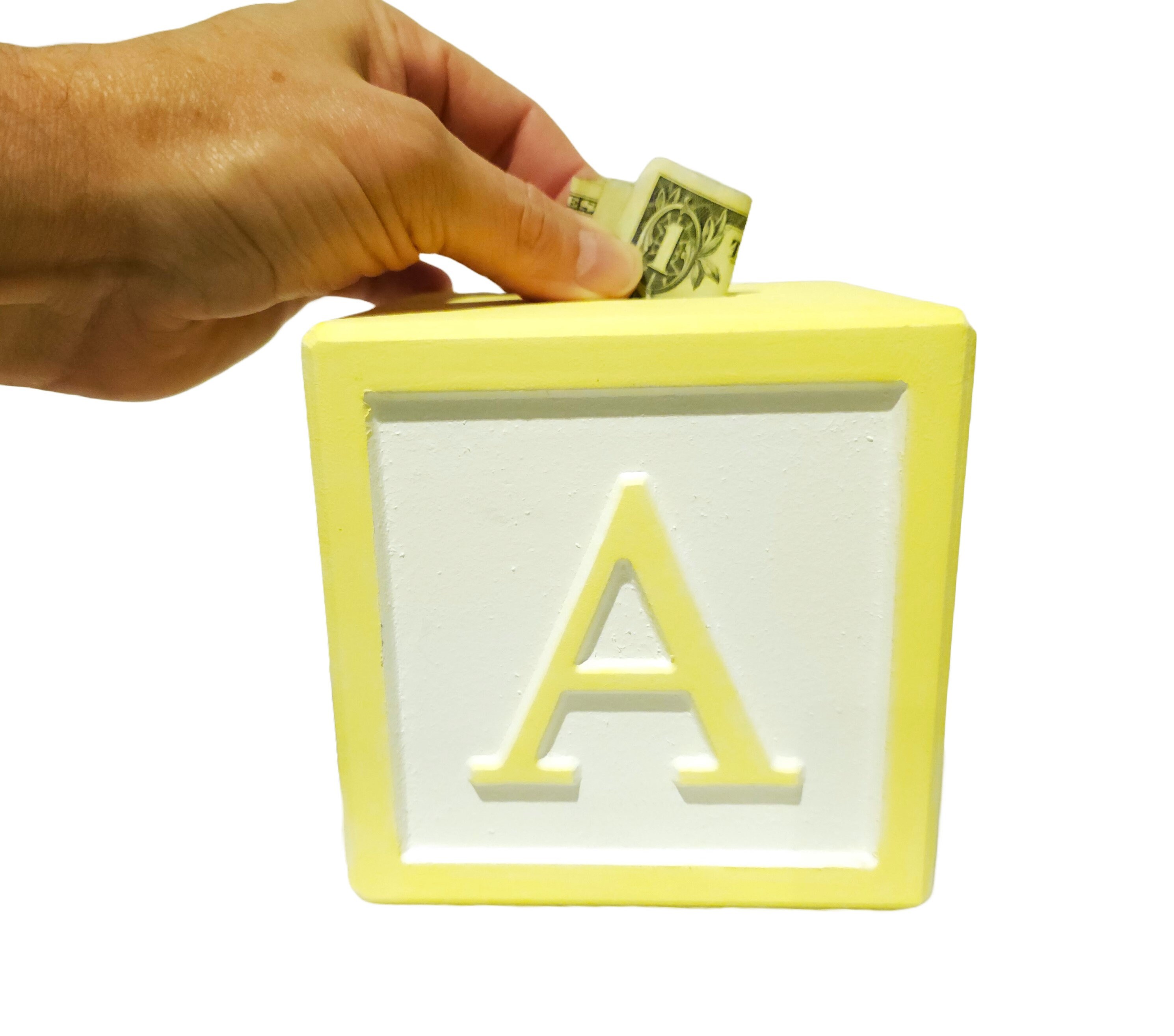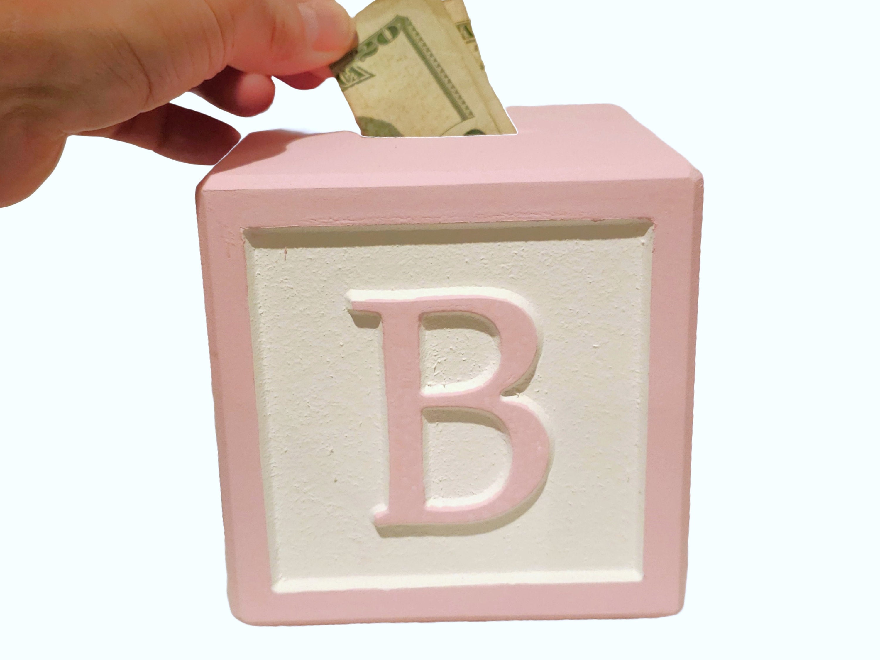 Baby's Piggy Bank, Classic Baby Shower Gift. Our Personalized Letter Bank makes the Cutest Nursery Decor. Wooden Piggy Bank is Customizable.