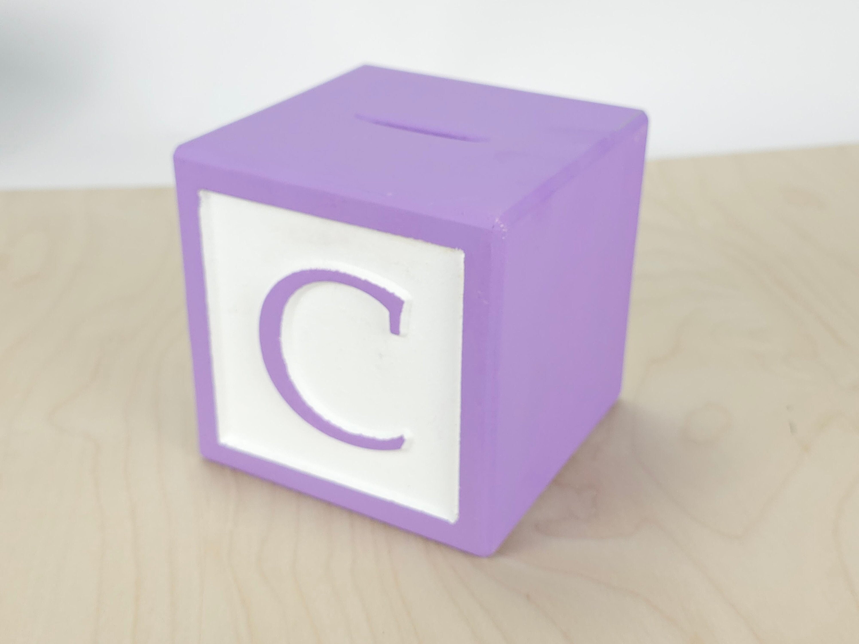 Our classic alphabet piggy banks are precision cut and hand painted to be the cutest focal point for your nursery decor! Made from engineered wood so they never warp or crack, our letter blocks make beautiful decorations for your baby showers, christening, or for your baby's little sanctuary. Available in 2 color schemes: MATTE pastels -OR- GLOSS primary colors -- both are painted against a WHITE background. Includes black rubber stopper to empty your treasures.