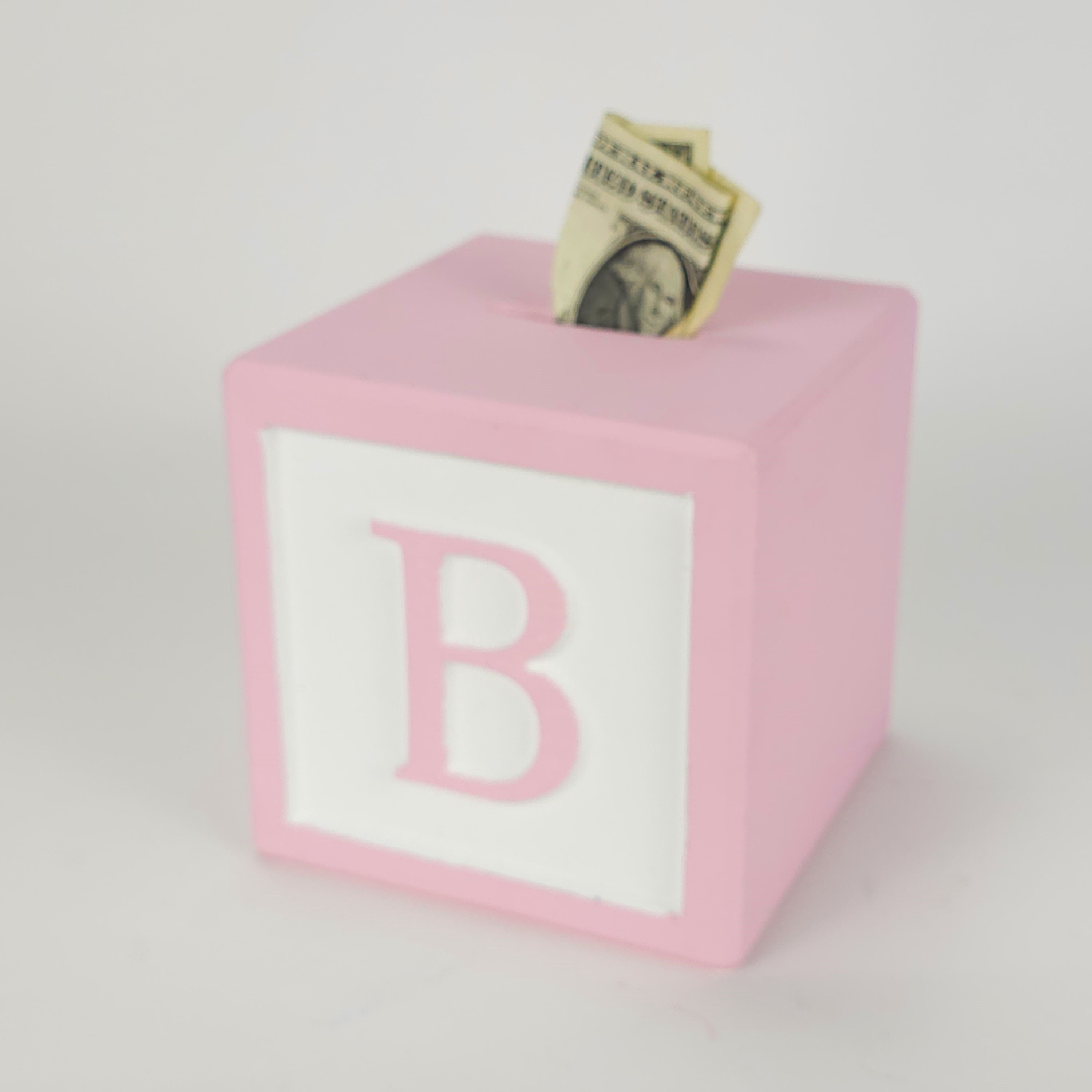Traditional Wooden Letter Block Piggy Banks for Girls. This Classic Design Makes Beautiful Nursery Decor and Best Seller Baby Gifts