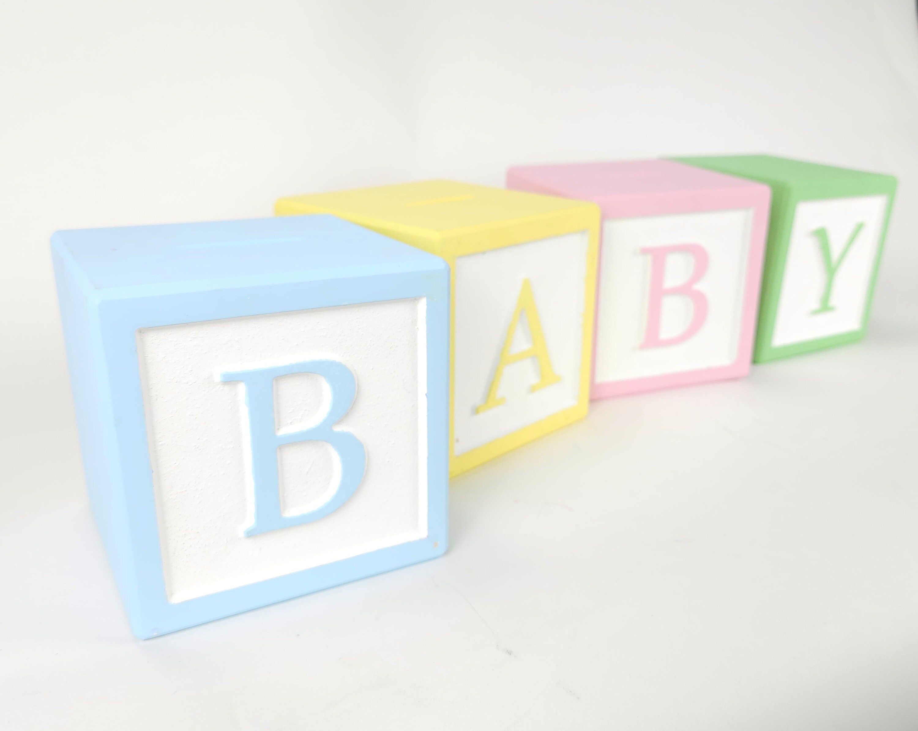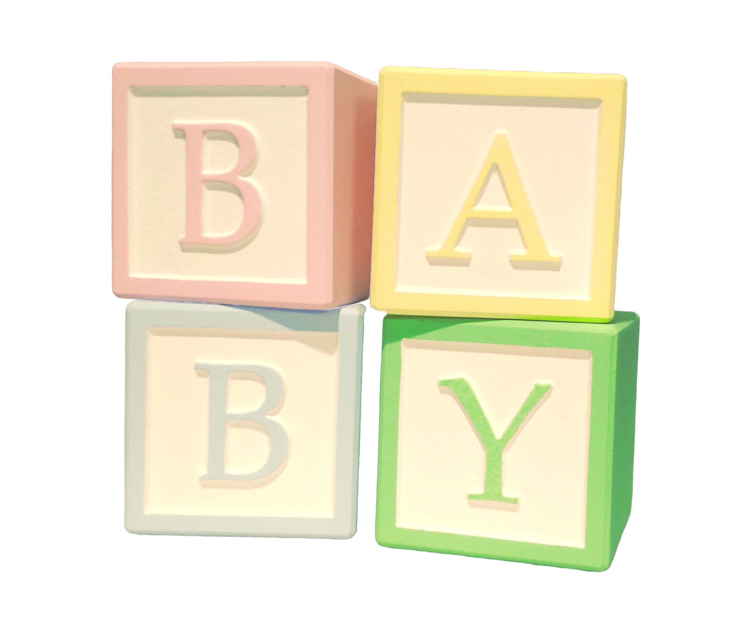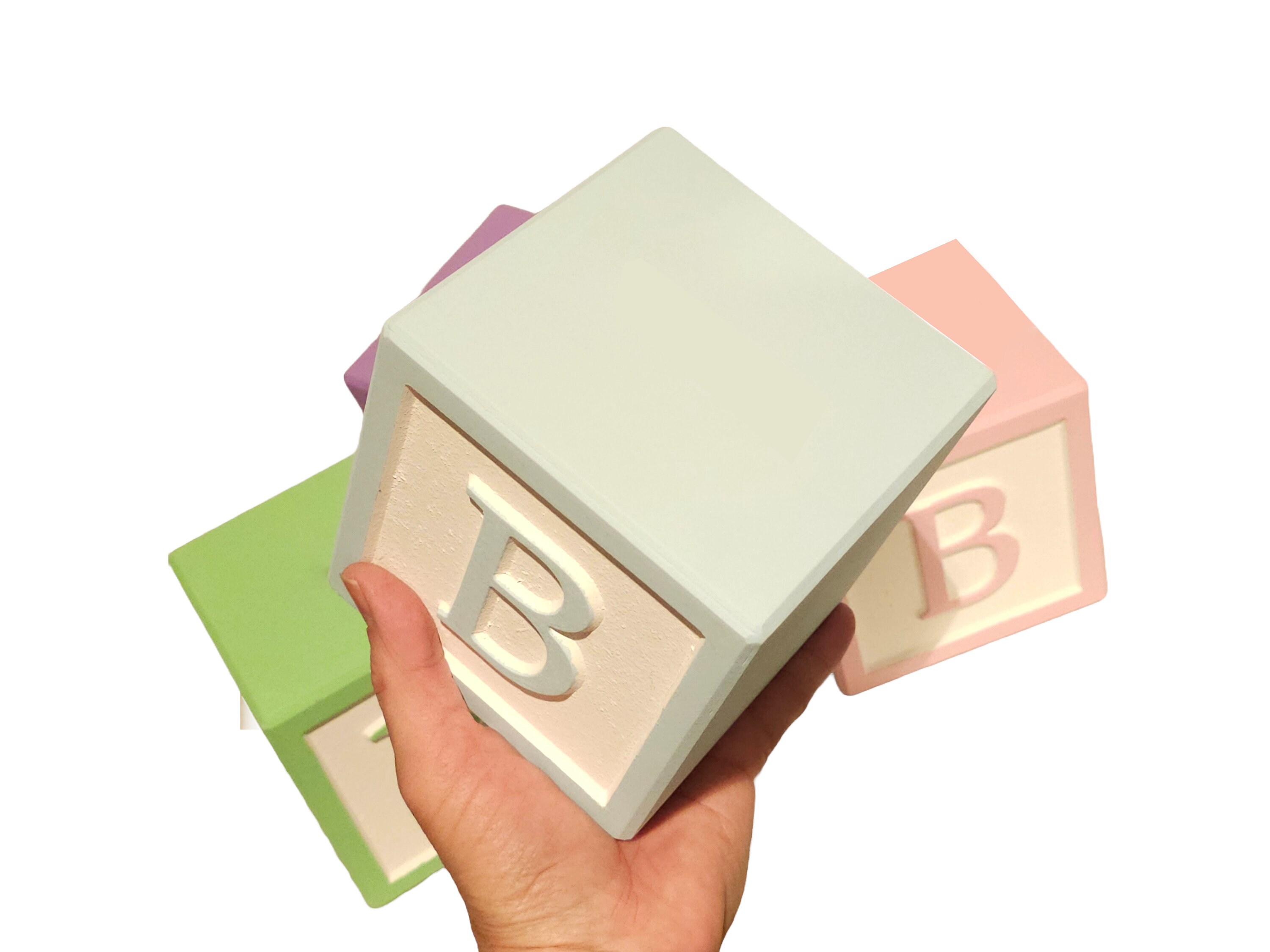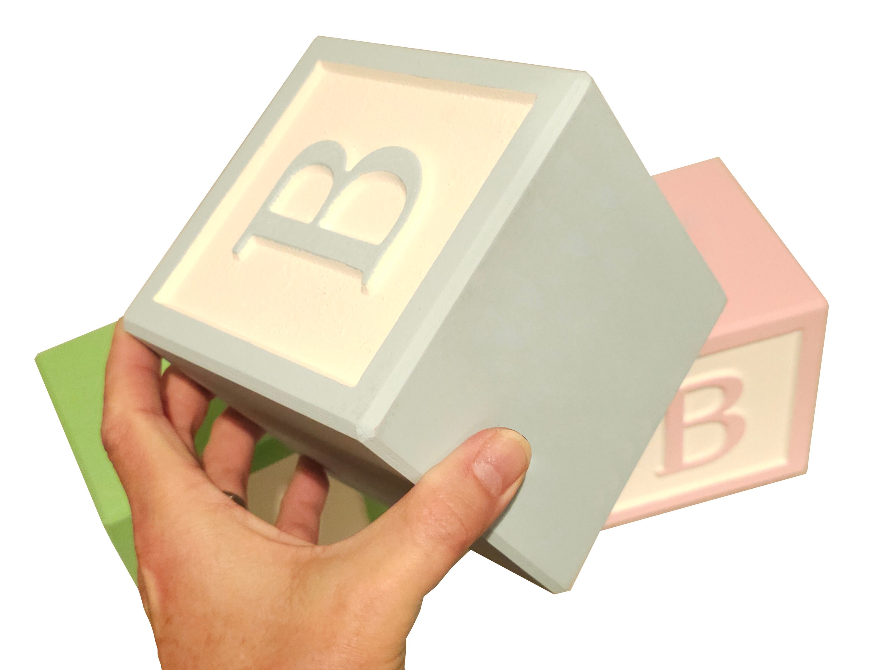 Our classic alphabet blocks are precision cut and hand painted to be the cutest focal point for your nursery decor! Made from engineered wood so they never warp or crack, our letter blocks make beautiful decorations for your baby showers, christening, or for your baby's little sanctuary. Available in 2 color schemes: MATTE pastels -OR- GLOSS primary colors -- both are painted against a WHITE background.