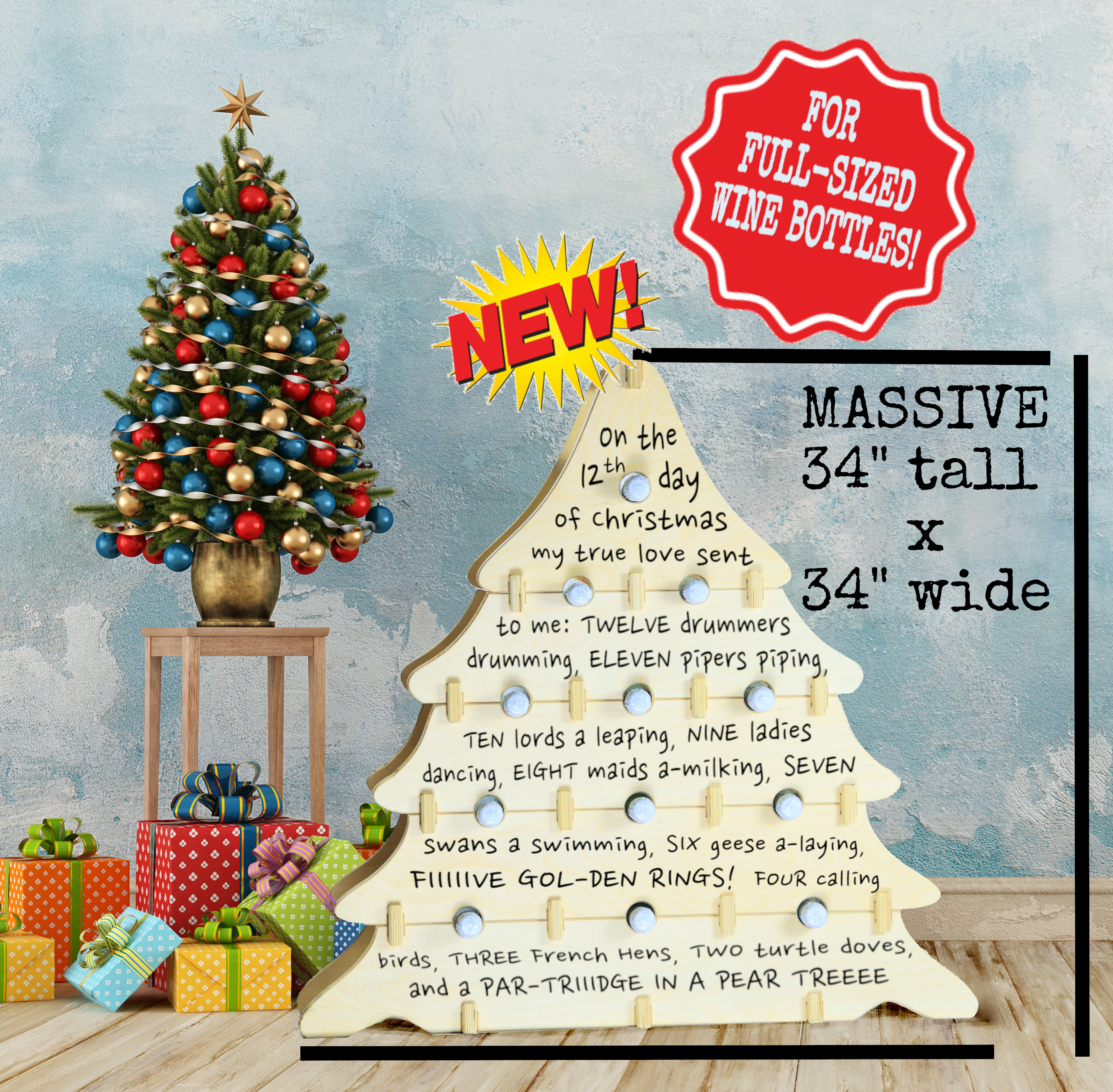 Adult Advent Calendar: Wooden Tree Holds Mini Bottles of Wine, Bubbly, Cider! Great Gift for Christmas in July, Xmas Parties, Housewarming!