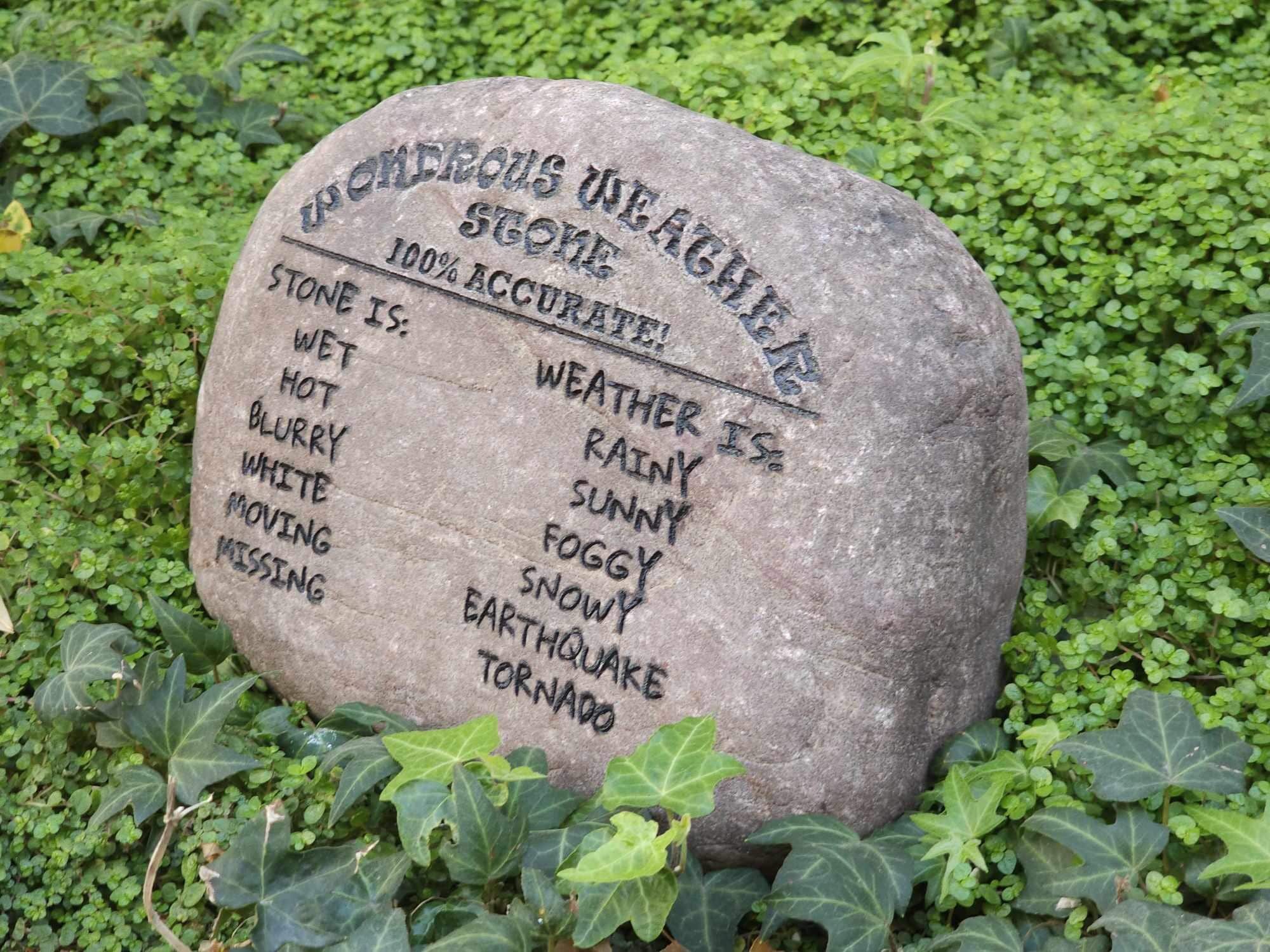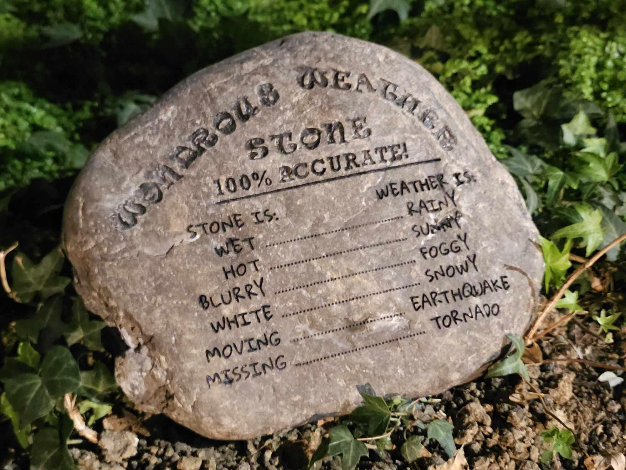 Weather forecasting stone sign for your yard or garden. Beautifully engraved (debossed words) with wording painted black. Funny sign for your garden.