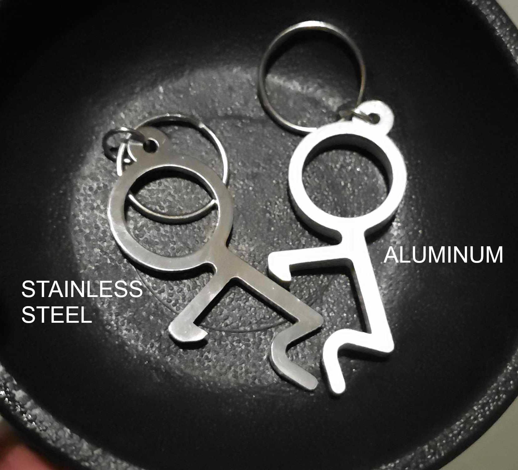 Traditional 11th Anniversary Stainless Steel Keychain Gift for Baby Daddy, Mom, Mamacita , Minimalist Stick Figure Design. Also in Aluminum