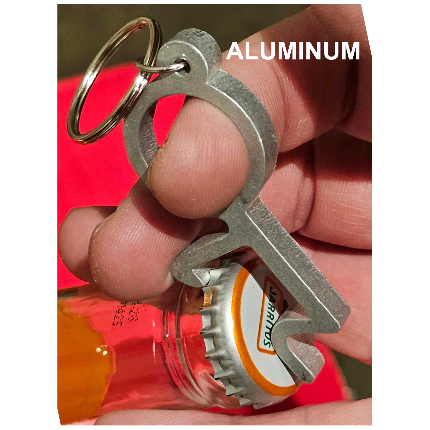Made from brushed Stainless Steel or tumbled/polished aluminum SOLID sheet metal carefully curated and sourced from USA manufacturers. We carefully cut and hand finish each one ensuring a long lasting and tarnish-free finish. Stainless steel keychains are 1/8" thick and aluminum ones are 1/4" thick.